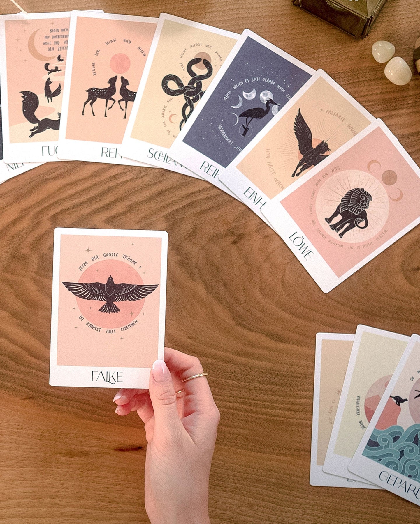 Gerade in schwierigen Lebenssituationen, aber auch wenn du dich im Alltag verloren fühlst, braucht es manchmal einen kleinen Impuls, um den eigenen Weg wieder klar zu sehen. Dein Krafttier steht dir zur Seite und unterstützt dich dabei, die Stimme deines Herzens wahrzunehmen und in deine Mitte zurückzufinden. Verbinde dich beim Kartenlegen mit der ganzen Stärke deines Animal Spirits und öffne dich für die Botschaften, die es dir durch dein Herz mitzuteilen hat.