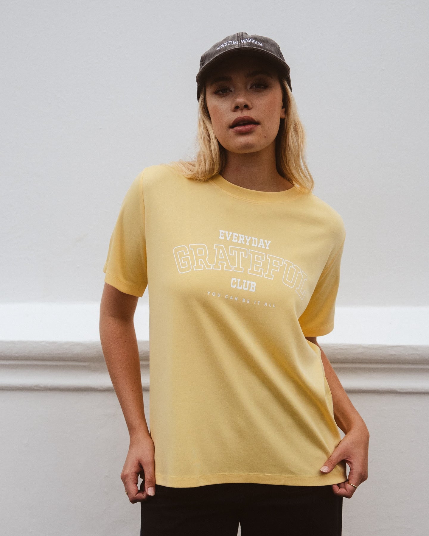Ein Gefühl. Eine Haltung. Dein Start ins neue Jahr. Der erste Drop 2025 bringt frische Farben, starke Statements und ein Gefühl von innerer Balance in deinen Alltag. Sonnengelb und Hellblau wecken die Sehnsucht nach Leichtigkeit – und machen Lust auf Neubeginn. Jedes Piece ist ein Reminder für Dankbarkeit, Achtsamkeit und bewussten Lifestyle. Für alle, die mit Klarheit und Positivität durchs Leben gehen. Du trägst, was du lebst.