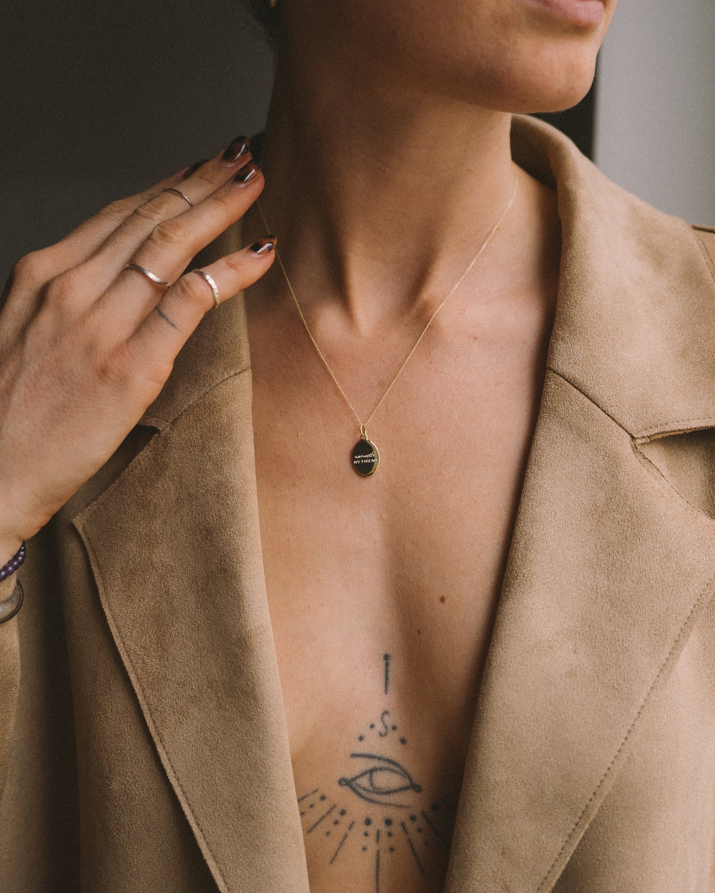 Gravuren wie „namasté my friend“ und „you can be it all“ begleiten dich durch den Tag, als liebevoller Reminder an das, was wirklich zählt.