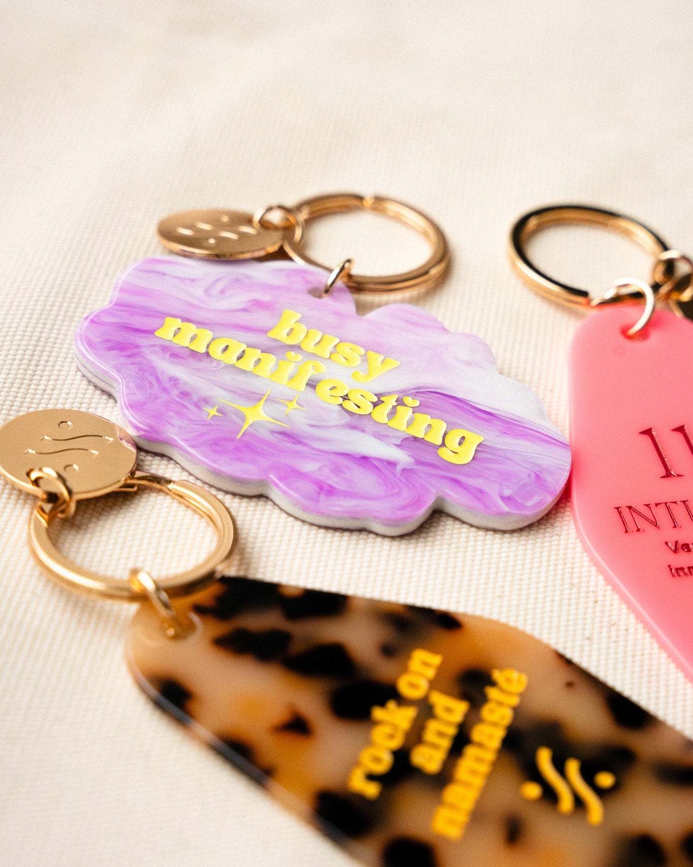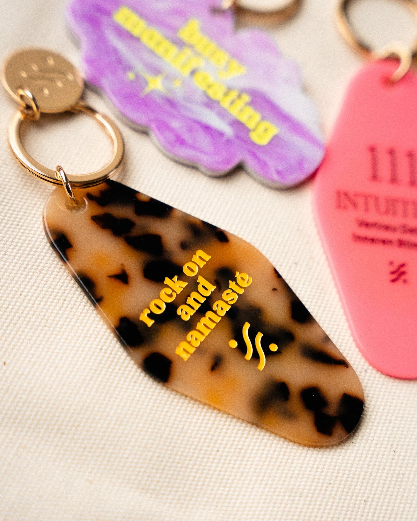 Unsere neuen RONA Schlüsselanhänger sind kleine Soul-Statements für deinen Alltag! Wähle zwischen „busy manifesting“, „111 – Intuition“ und „rock on and namasté“. Ein Reminder für Deine Kraft 💫